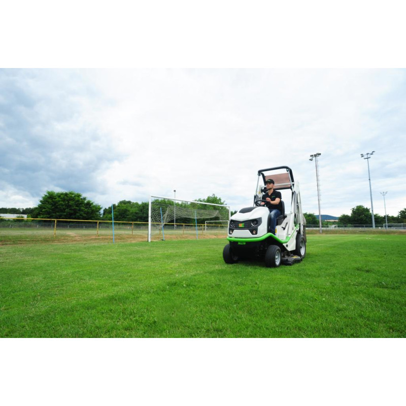 Profesionálný traktorová sekačka trávy ETESIA Buffalo 124 HVHP2 se záběrem 124 cm, vysypáváním koše do výšky 180 cm a s motorem o výkonu 23 HP zvládne efektivně posekat až 15 000 m2/hoh.