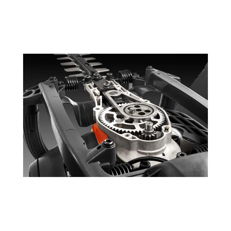 Nůžky na živý plot s oboustrannou střihací lištou o délce 75 cm, osazené motorem o objemu 21,7 ccm s vysokým točivým momentem, ideální pro stříhání tvrdších větví.