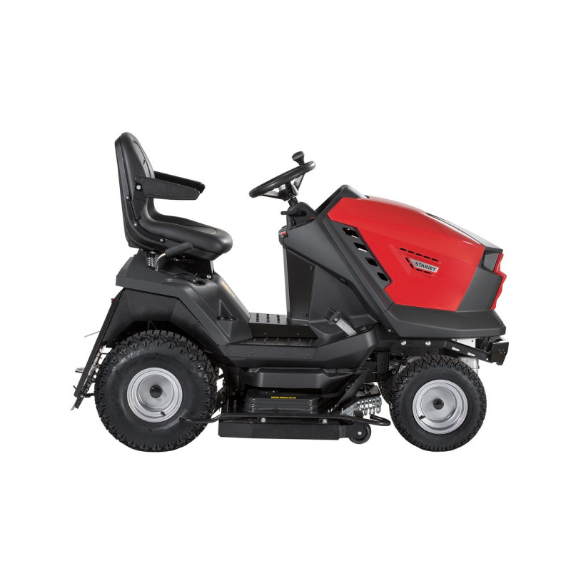 Model Starjet P6 představuje špičku v oblasti komfortu a výkonu mezi zahradními traktory ve své třídě. Tento stroj přináší rozšířenou výbavu, která zahrnuje nastavitelný sloupek řízení a volant s ovládací koulí, což umožňuje snadné ovládání jednou rukou, zatímco druhá zůstává volná pro další operace. Díky tomuto ergonomickému a promyšlenému designu je práce s traktorem maximálně pohodlná a efektivní, ať už při sekání rozlehlých travnatých ploch, nebo při manévrování v náročnějších podmínkách.